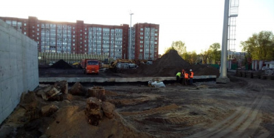 Работы на спортивном объекте, некогда принадлежавшем авиационному заводу, а 14 лет