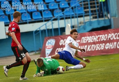 И вот пока народ на трибунах откровенно скучал, футболисты «Факела» стиснув зубы, через не могу, делали свою работу. Искрометной игры тут нельзя было ждать по определению. Вратари свои команды по разу до перерыва выручили. Дворников бил головой из откровенного офсайда, но Саутин молодец, не стал выключаться, парировав сложный мяч. И ведь правильно сделал, так как «вне игры» арбитры так и не зафиксировали. Цицилин тоже оказался на высоте, когда Бирюков на скорости заложил вираж в штрафную. Из защитников за легконогим форвардом воронежцев никто не поспел, а голкипер имел преимущество, двигаясь навстречу, и хоть не сразу, но сумел преградить мячу дорогу в сетку (на фото).